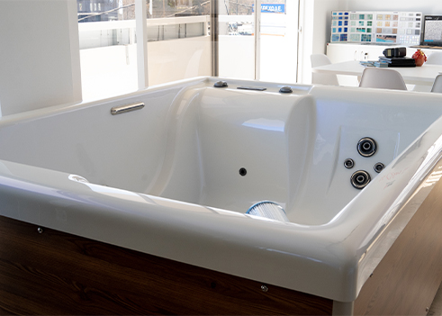 Στον πρώτο όροφο των εγκαταστάσεών μας, έχουμε διαμορφώσει έναν ειδικό χώρο που λειτουργεί σαν εκθεσιακό κέντρο. Πρόκειται για έναν πλήρως οργανωμένο χώρο όπου ο επισκέπτης μπορεί να δει από κοντά spa, δείγματα υλικών, jacuzzi, καταλόγους, περιοδικά και συνεργαζόμενα brands, ώστε να αποκτήσει μια ολοκληρωμένη εικόνα των επιλογών του.