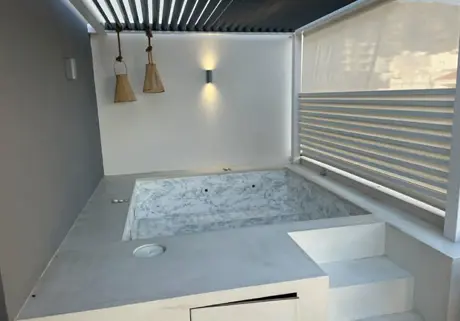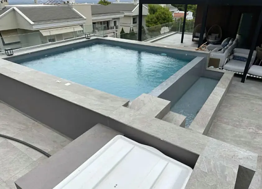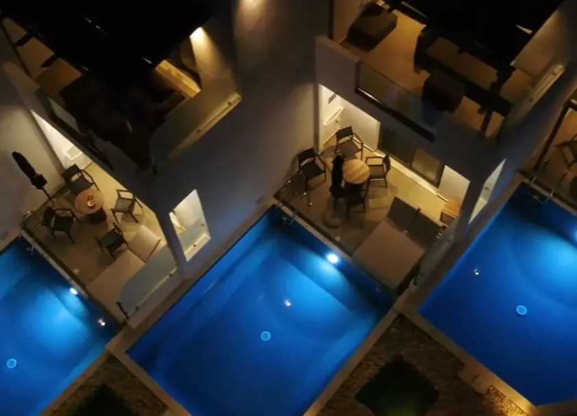 Ο χώρος ευεξίας περιλαμβάνει τη κατασκευή εσωτερικής πισίνας σύγχρονων προδιαγραφών, καθώς και ολοκληρωμένη ζώνη spa με χαμάμ και σάουνα, σχεδιασμένα για καθημερινή χρήση και υψηλή λειτουργικότητα. Ο συνδυασμός ελεγχόμενων συνθηκών θερμοκρασίας και υγρασίας προσφέρει εμπειρία χαλάρωσης και αναζωογόνησης, αναβαθμίζοντας ουσιαστικά την ποιότητα διαμονής και ευεξίας.